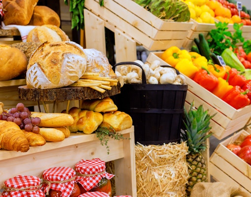 A bustling farmers’ market with fresh produce, baked goods, and local treats, right outside the museum.