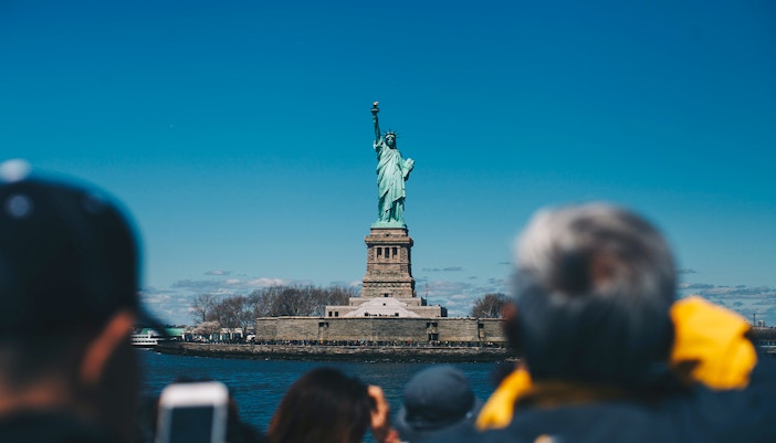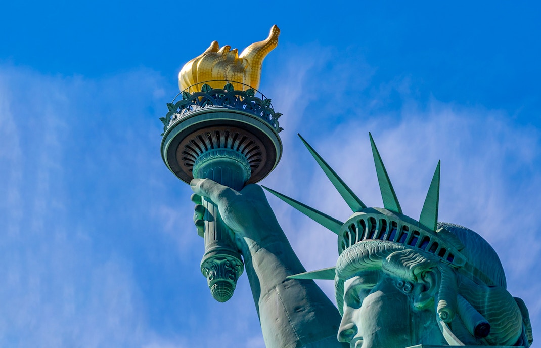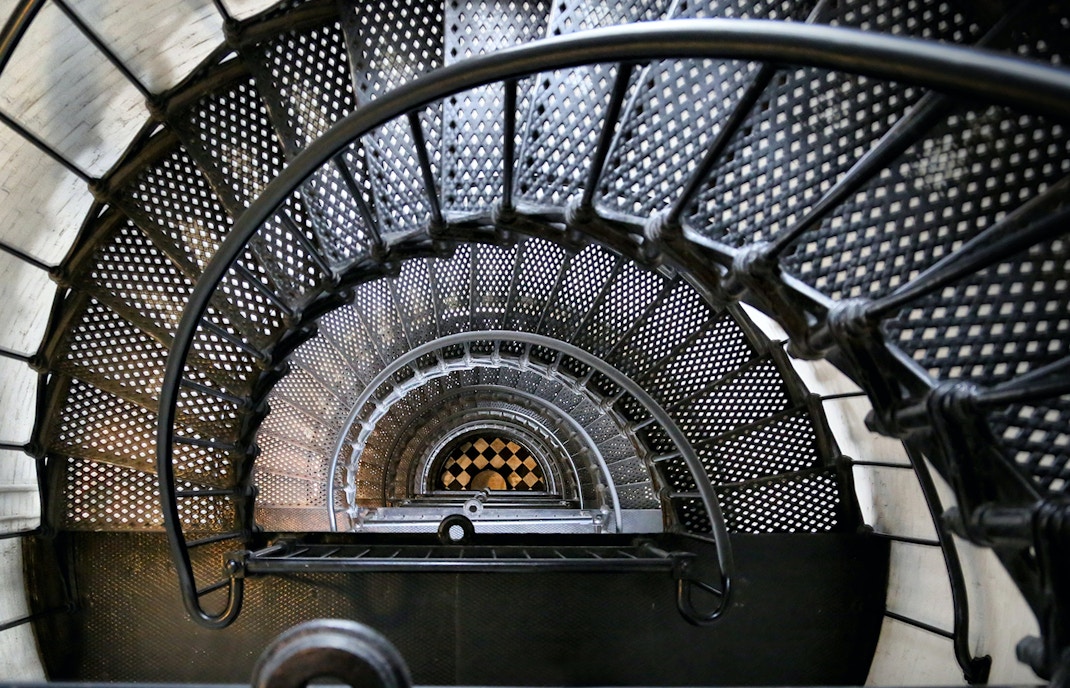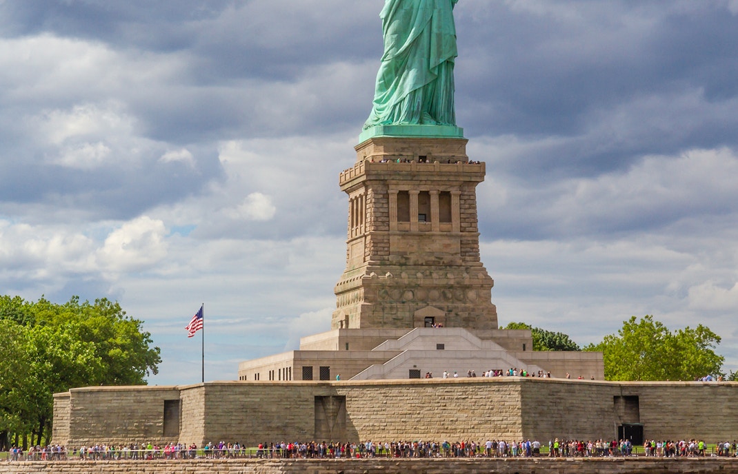 Es gibt insgesamt sieben Etagen im Inneren des Sockels, von denen drei besonders bemerkenswert sind. Auf der 3. Ebene haben Sie Zugang zur Außenplattform und auf der 6. Etage befindet sich eine Aussichtsplattform mit atemberaubendem Blick auf den Hafen und zwei Ausgängen. Vom 7. Stockwerk aus beginnt der unglaublich steile und lange Aufstieg zur Krone der Statue.