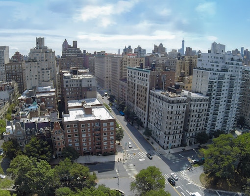 Una calle clásica del Upper West Side con casas de piedra rojiza, tiendas locales y fácil acceso tanto al museo como a Central Park.