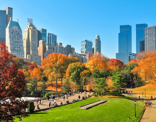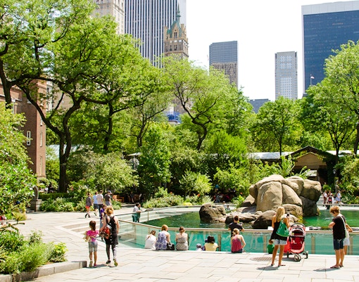 Enter Central Park at 59th Street for walking paths, carriage rides, and the Central Park Zoo.