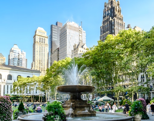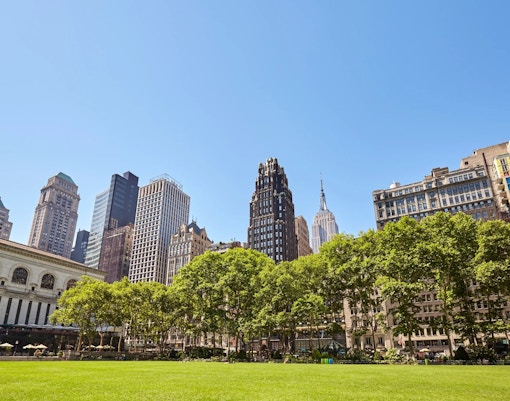 A green oasis surrounded by skyscrapers, Bryant Park offers outdoor movies, a winter village, and plenty of seating for a break.