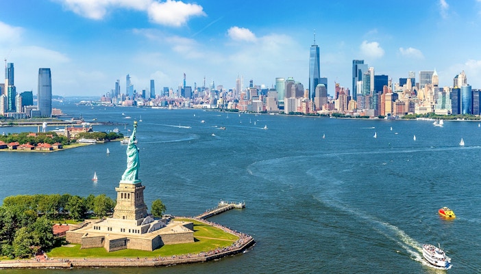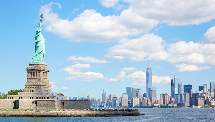 Battery Park ligt op het zuidelijke puntje van Manhattan en is het belangrijkste vertrekpunt voor bezoekers die vanuit New York City reizen. De ingang van de veerboot terminal is vlakbij Castle Clinton National Monument, een historisch fort dat bezoekerscentrum is geworden.